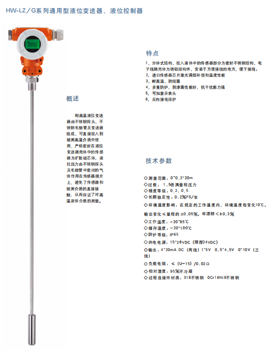 • HW-LZ/G液位变送器 HW-LZ/G液位变送器