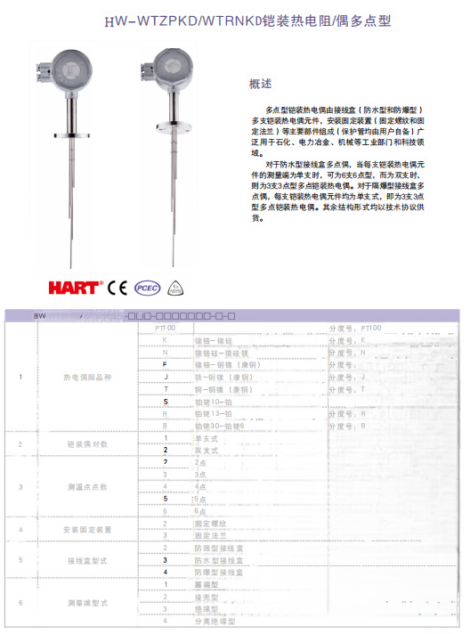HW-WTZPKD/WTRNKD铠装多点热电阻/热电偶 HW-WTRNK铠装热电偶 HW-WTZPK铠装铂热电阻