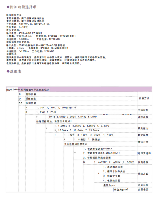 • 液位计配件及防腐产品 HW-LZ-CZ磁致伸缩液位计 HW-LZ-UK磁性浮球液位计 HW-LZ-UH磁性浮子液位计
