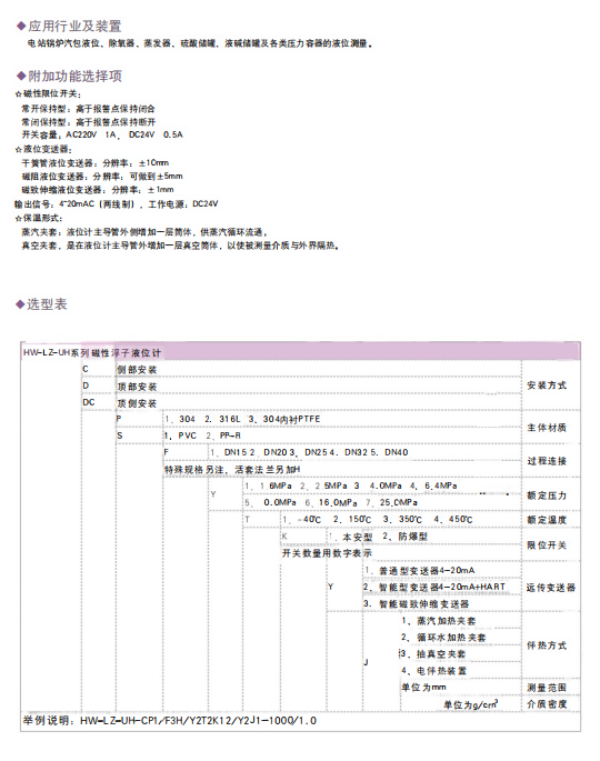 • 液位计配件及防腐产品 HW-LZ-CZ磁致伸缩液位计 HW-LZ-UK磁性浮球液位计 HW-LZ-UH磁性浮子液位计