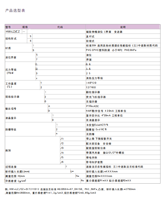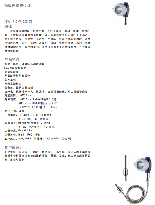 液位计配件及防腐产品 HW-LZ-CZ磁致伸缩液位计 HW-LZ-UK磁性浮球液位计 HW-LZ-UH磁性浮子液位计